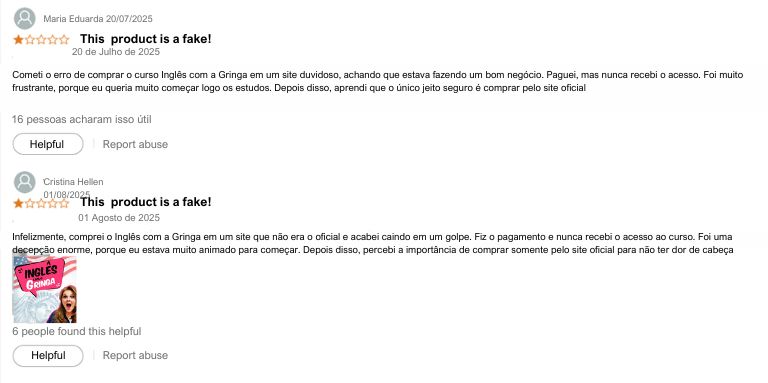 “Antes de fazer o curso Inglês com a Gringa, eu tinha dificuldade para falar inglês com confiança. Agora me sinto pronto para qualquer oportunidade de trabalho! Optar pelo curso completo foi o melhor investimento que fiz.”